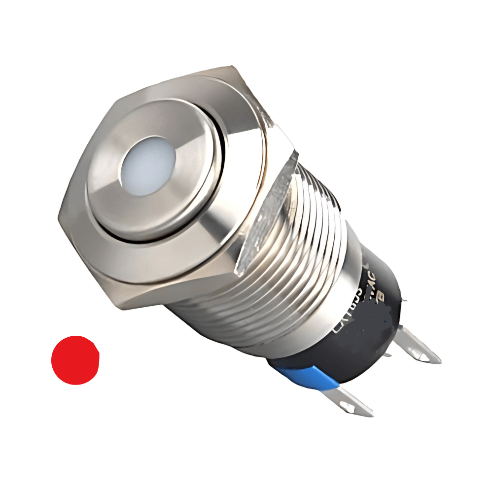 High Head 16mm 3-6V Latching Red Dot Illuminated Silver Metal Switch