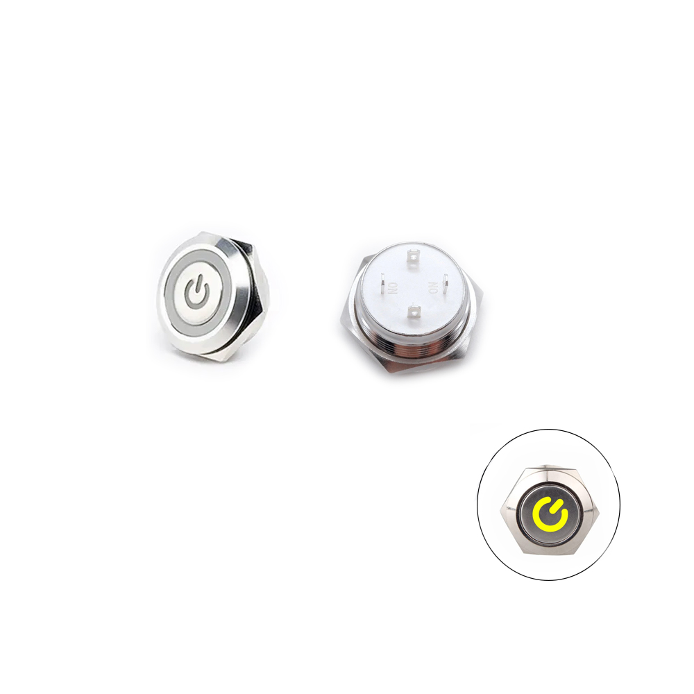 Ultra-Short Flat Head 19MM Yellow 12-24V Ring Non-Latching Ultra-Thin Touch Metal Push Button with Led Light Waterproof