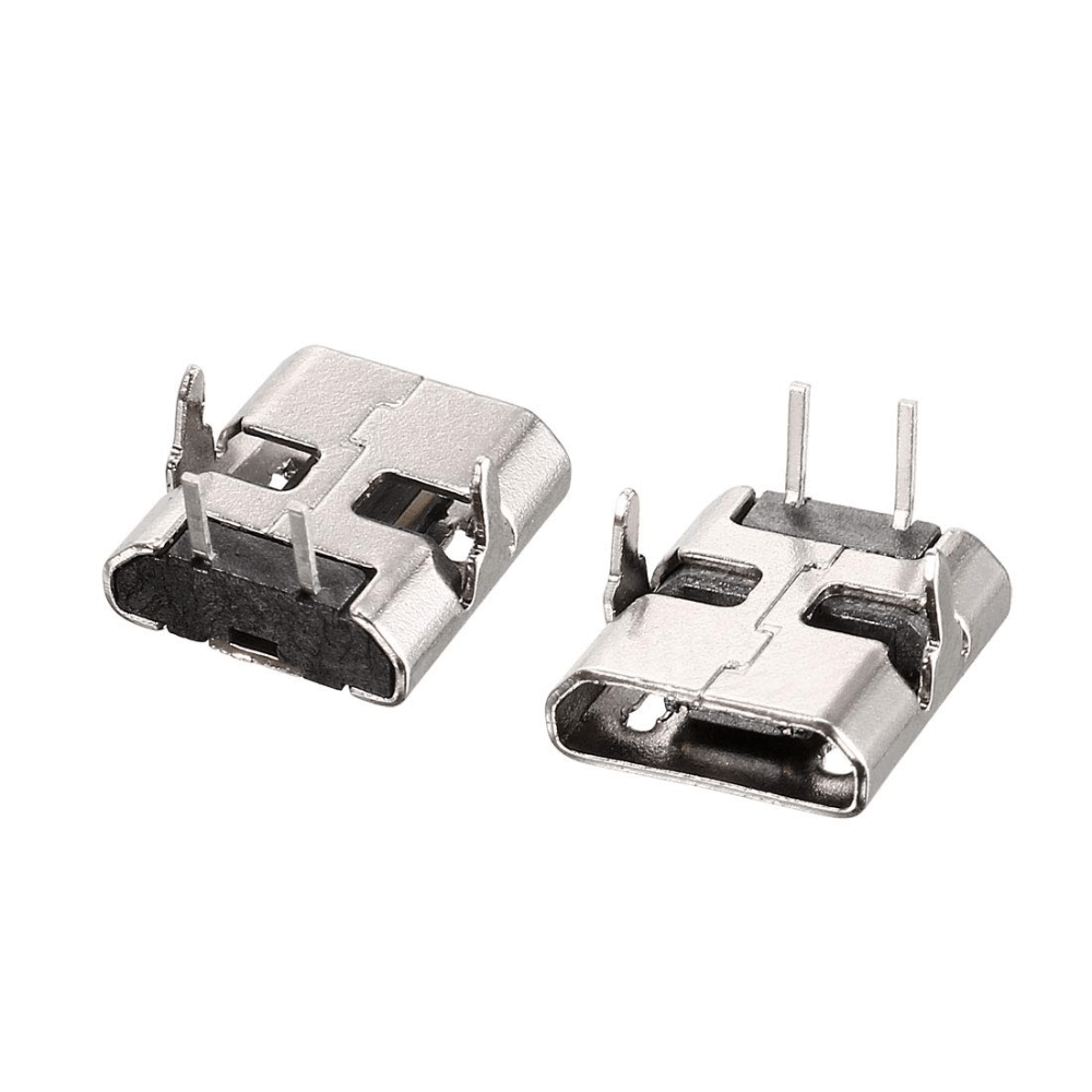 USB Micro Female Socket Connector 2-Pin DIP 90 Degree – 5 Pcs